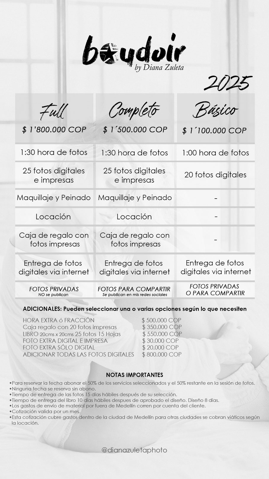Hola soy Diana Zuleta, publicista (UPB) de profesión, fotógrafa boudoir por amor propio 💘